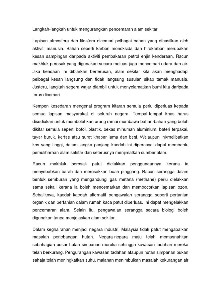 Artikel punca pencemaran alam sekitar pdf. Menyebabkan banyak pencemaran ke atas alam sekitar. Sejak dekad yang lalu peristiwa seperti tumpahan minyak Exxon pada tahun 1990 telah memusnahkan kehidupan liar dan sebahagian. Mengikut laporan yang dibuat oleh Jabatan Alam Sekitarmelalui akhbar Utusan Pengguna pada tahun.