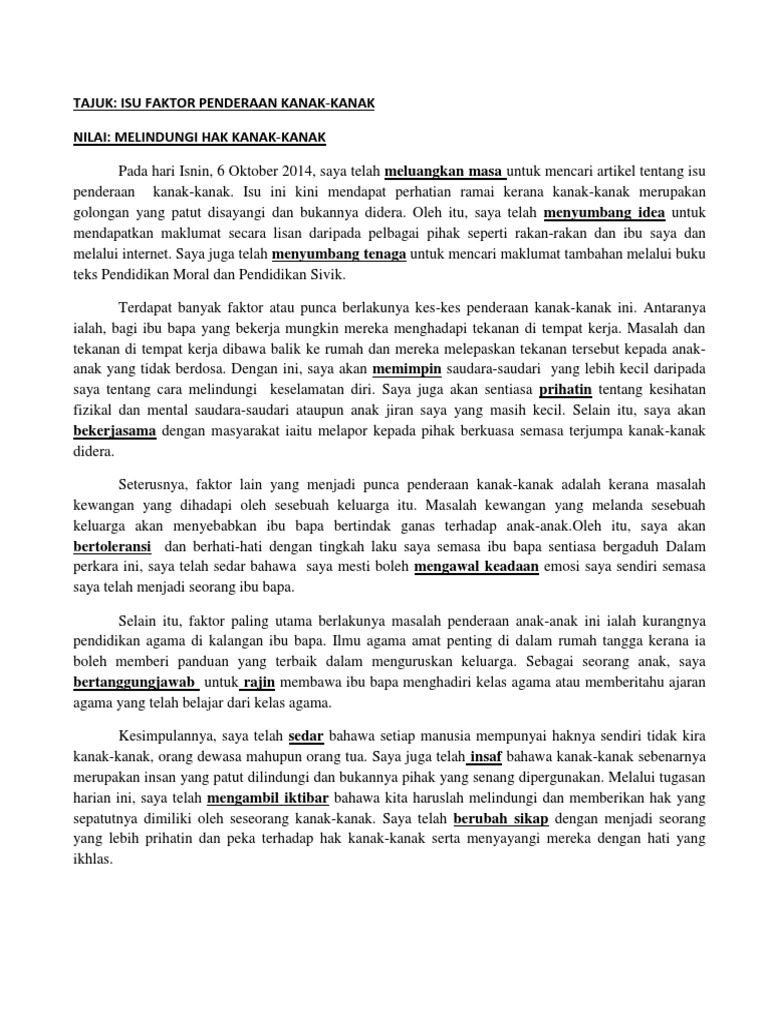 Mangsanya adalah kanak-kanak remaja individu dewasa dan tidak mustahil berlaku juga kepada warga tua. Contoh Karangan Punca-punca Berlakunya Penderaan Kanak-kanak.